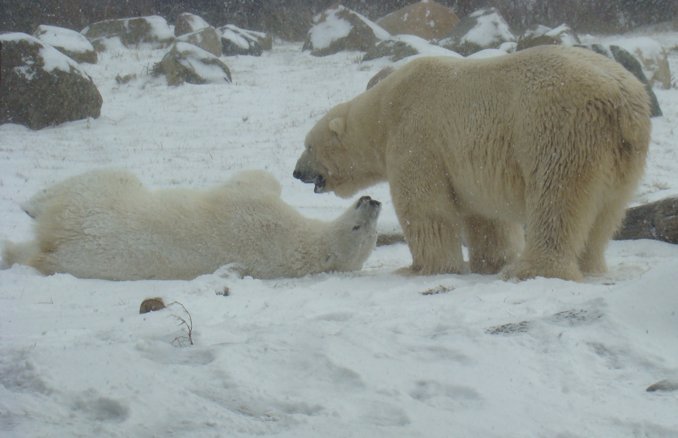 Visit North American’s Polar Frontier, which opened in 2010, to watch polar bears enjoy the new fallen snow. They like to be clean and dry as dirty fur provides little insulation, so they take a bath by rolling in the snow. Imagine the polar bears thought the weather perfect.